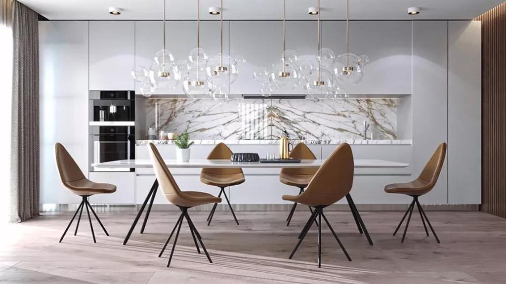 精致的燈具本來(lái)就有裝飾作用,而且燈光可以增添空間的層次感,令空洞的白墻不再單調(diào)。墻面可以根據(jù)不同的照明需求,選擇不同的冷光、暖光、中性光,令空間也發(fā)生色調(diào)的改變。